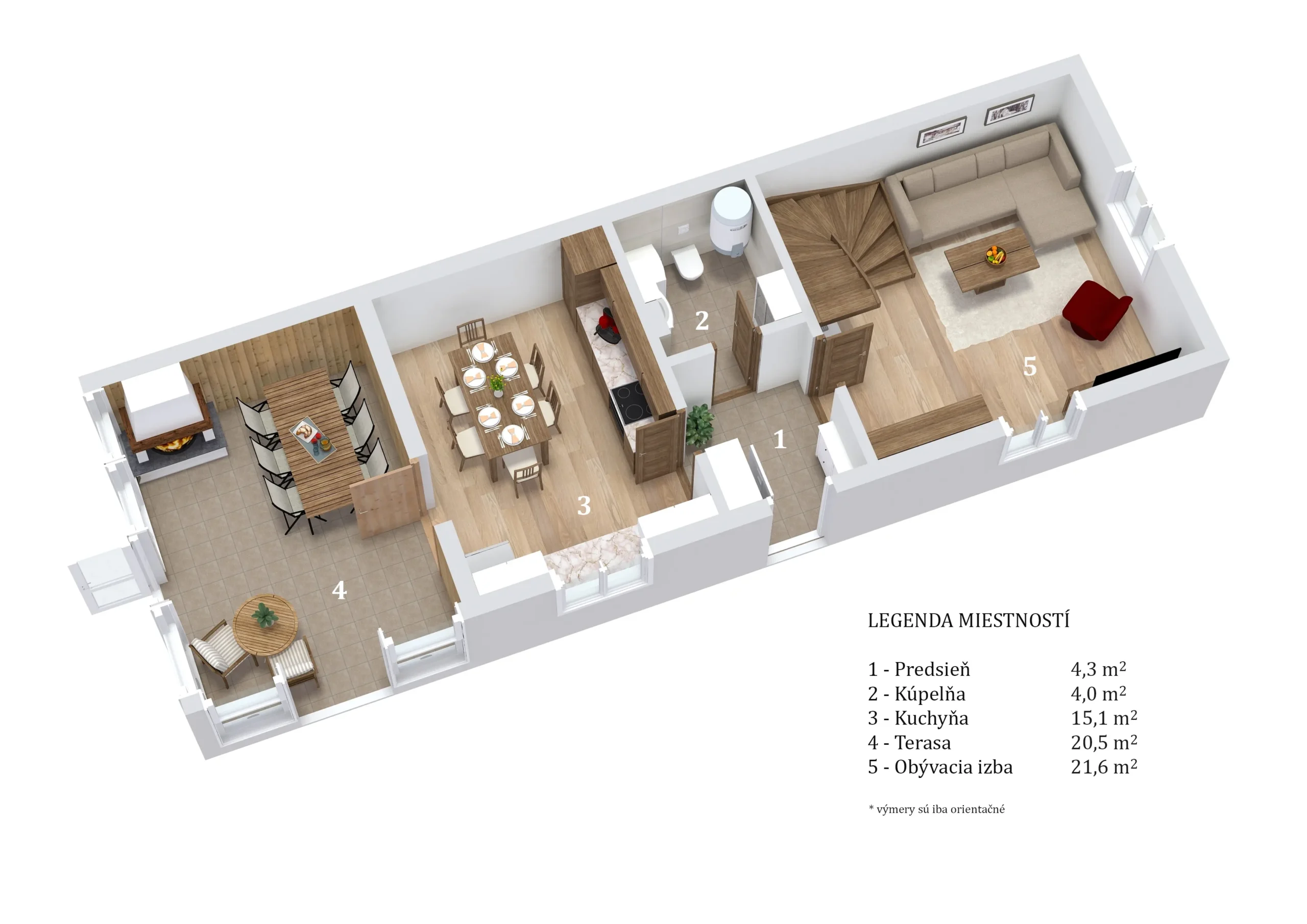 Z toho zastavaná plocha 79 m² a úžitková plocha 93 m² + 20 m² terasa.