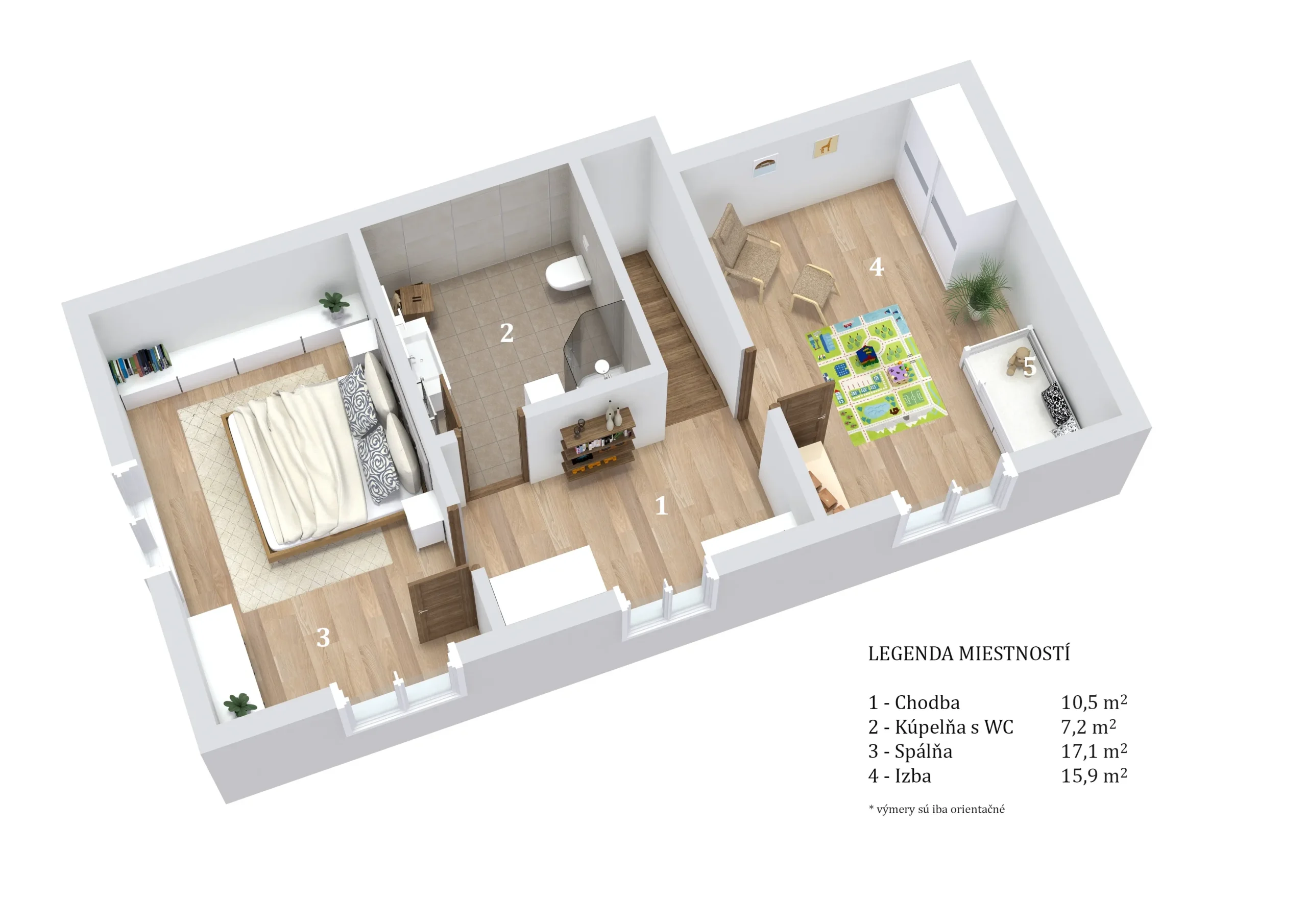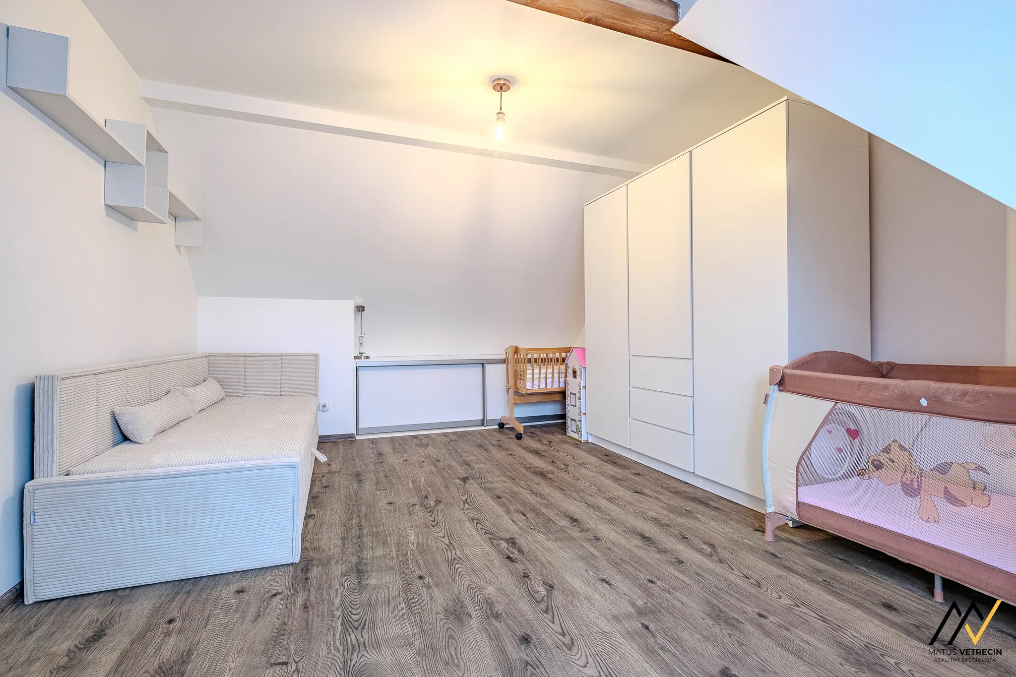 Druhá izba momentálne slúži ako detský svet, no vďaka svojej dispozícii sa kedykoľvek premení na vašu novú pracovňu či hosťovskú izbu.