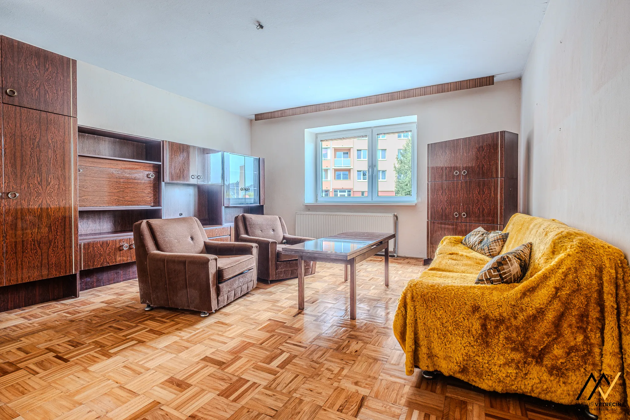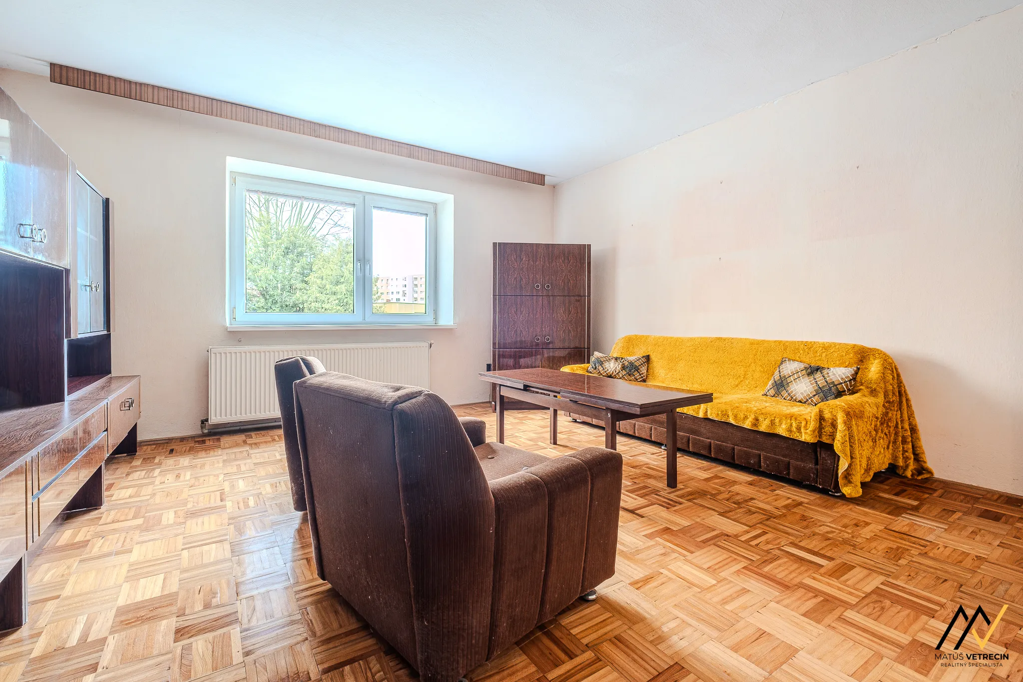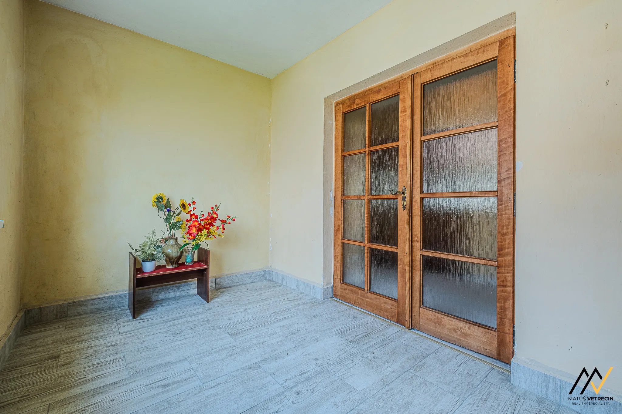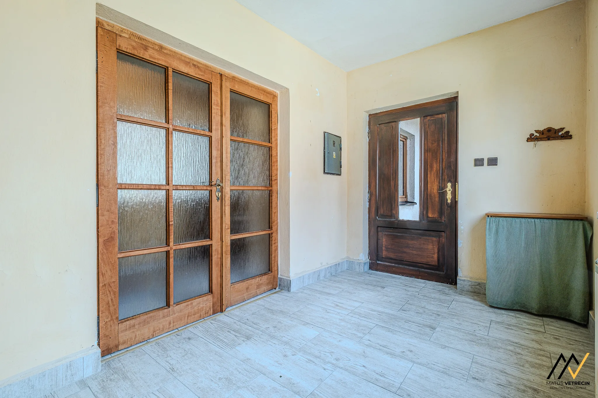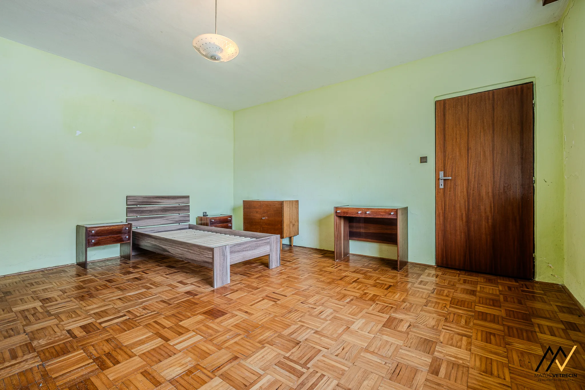 Kuchyňa je prirodzeným východiskovým bodom domu. Hneď za ňou sa nachádza samostatná a priestranná obývacia izba. Toto klasické rozdelenie miestností oceníte najmä vtedy, ak preferujete pokoj pri varení a chcete, aby ruch z kuchyne zostal oddelený od relaxačnej zóny domova. Hoci je interiér v pôvodnom stave, poctivé drevené podlahy v izbách mu dodávajú hrejivú atmosféru a sú ideálnym základom pre vašu budúcu rekonštrukciu. Praktickým doplnkom kuchynskej časti je špajza, ktorú oceníte pri každom väčšom nákupe.